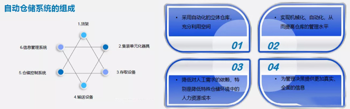 自動(dòng)倉儲(chǔ)系統(tǒng)初期多指自動(dòng)化立體倉庫,如今已遠(yuǎn)遠(yuǎn)超過了之前的范疇。從廣義上來講自動(dòng)倉儲(chǔ)系統(tǒng)還包括可對(duì)單元貨物實(shí)現(xiàn)自動(dòng)化裝卸車、自動(dòng)化拆碼垛、自動(dòng)化存取,以及可以實(shí)現(xiàn)自動(dòng)化分揀、自動(dòng)化包裝等功能,并進(jìn)行自動(dòng)控制和信息管理的倉儲(chǔ)系統(tǒng)。